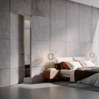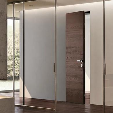 Стильные двери , отличающиеся высоким качеством, сливаются со стеной, создавая бесшовный дизайн.